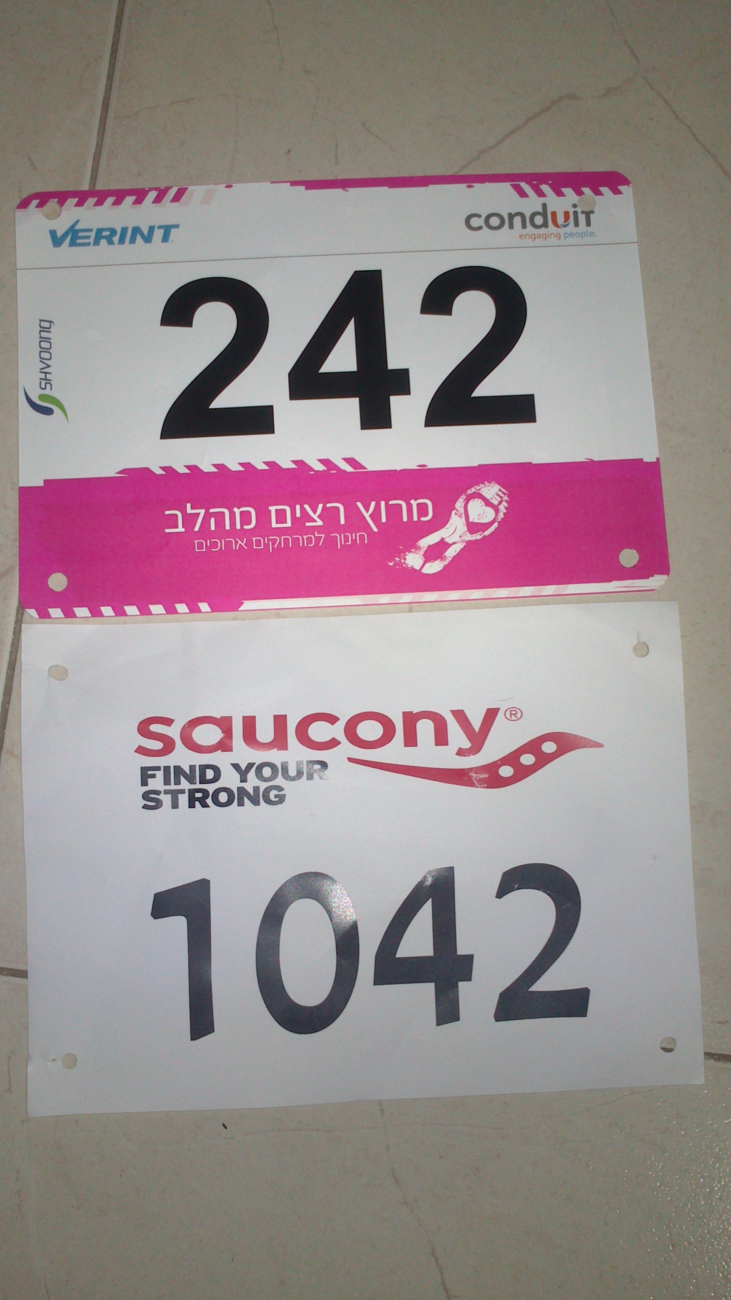 מוציאה את מספר החזה מהמעטפה: 1042. איזה כיף! מישהו שם למעלה קורא את הבלוג שלי ויודע שאני בעניין של המספר 42? (אני יודעת, אתם חושבים שזה במקרה. אבל מה תגידו על זה שבאותו שבוע במרוץ 'רצים מהלב' בת"א – שמאורגן על ידי חברה אחרת – קיבלתי את המספר 242 ?).